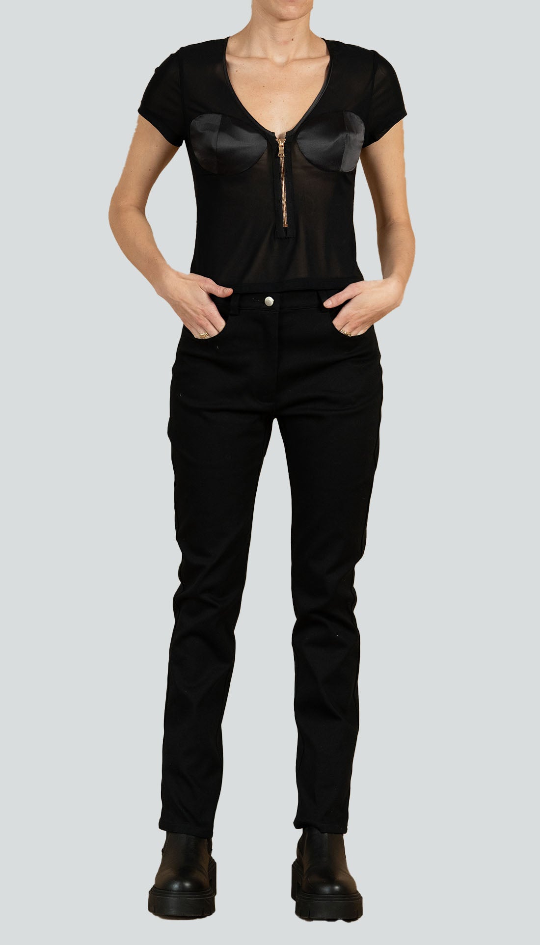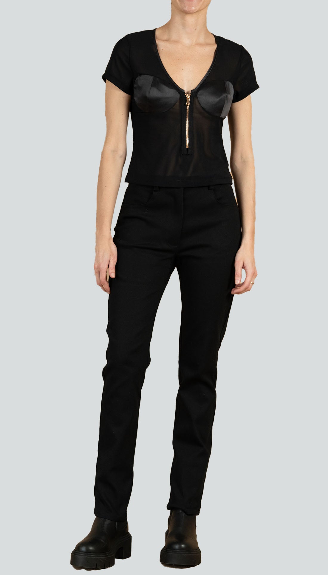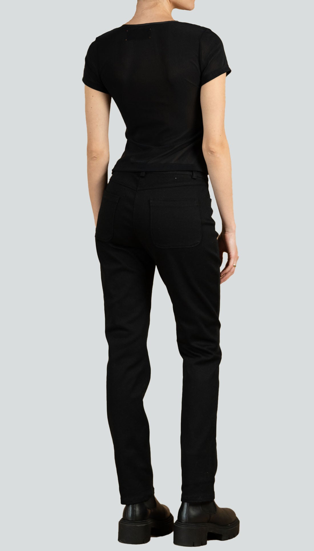 Introducing the Clarisse Pants – your new wardrobe essential for understated elegance. These classic straight-leg black pants effortlessly combine style and versatility. Featuring both front and back pockets, they offer practicality without sacrificing sophistication. The front zipper and button add a polished finish, making these pants a timeless choice for any occasion. Elevate your wardrobe with the enduring charm of the Clarisse Pants – where classic tailoring meets modern flair.