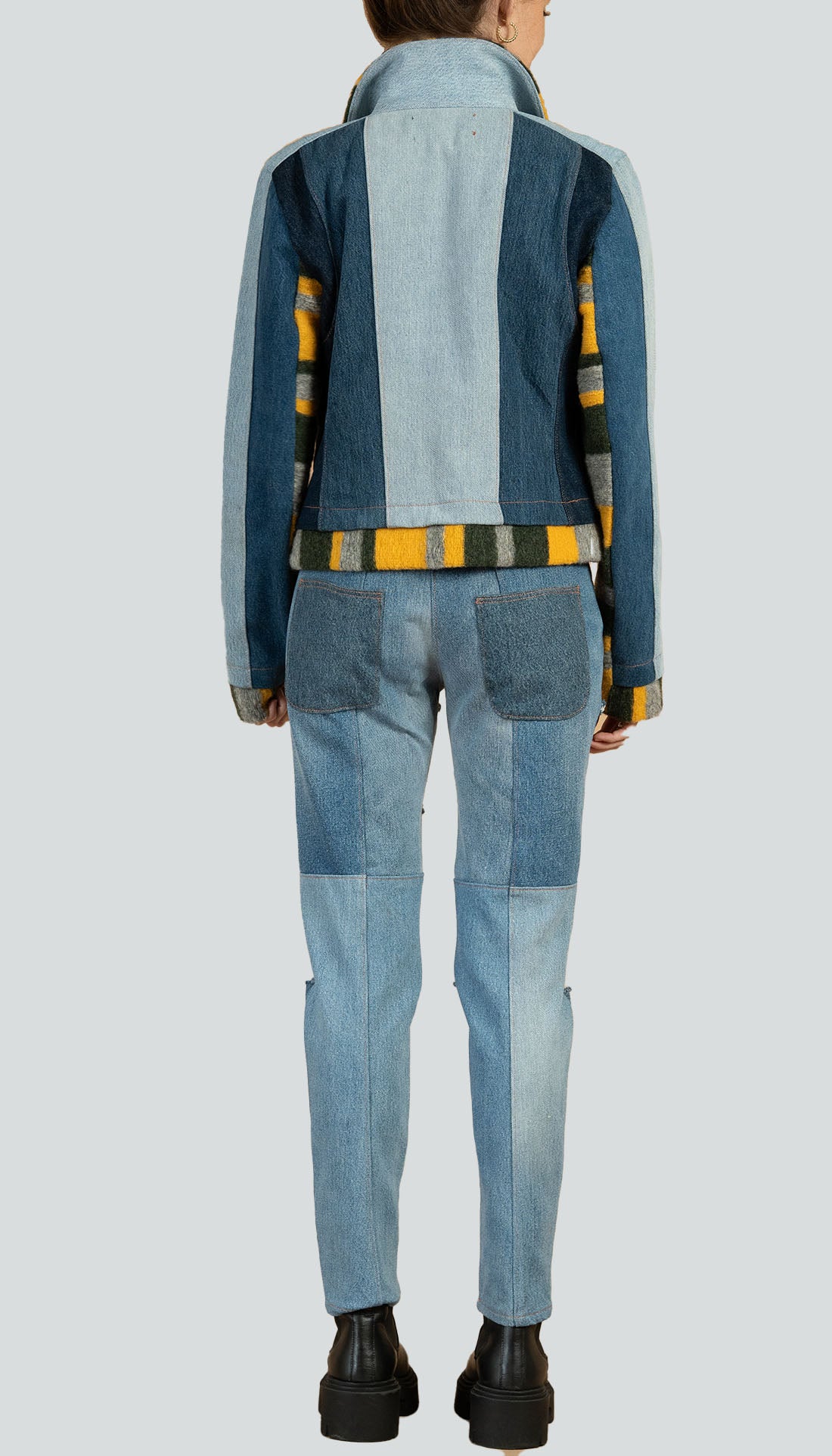 SELF: 100% RECYCLED DENIM, CONTRAST: 100% WOOL